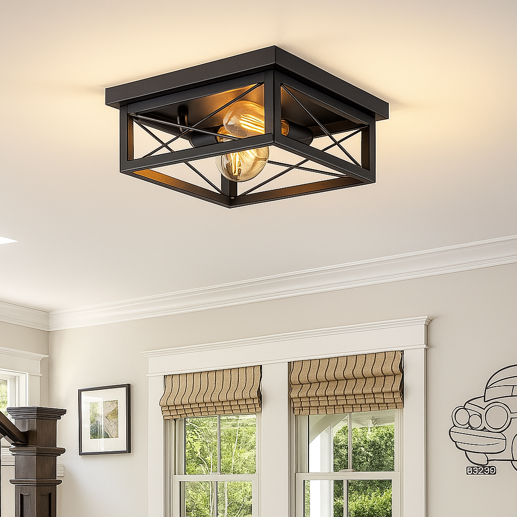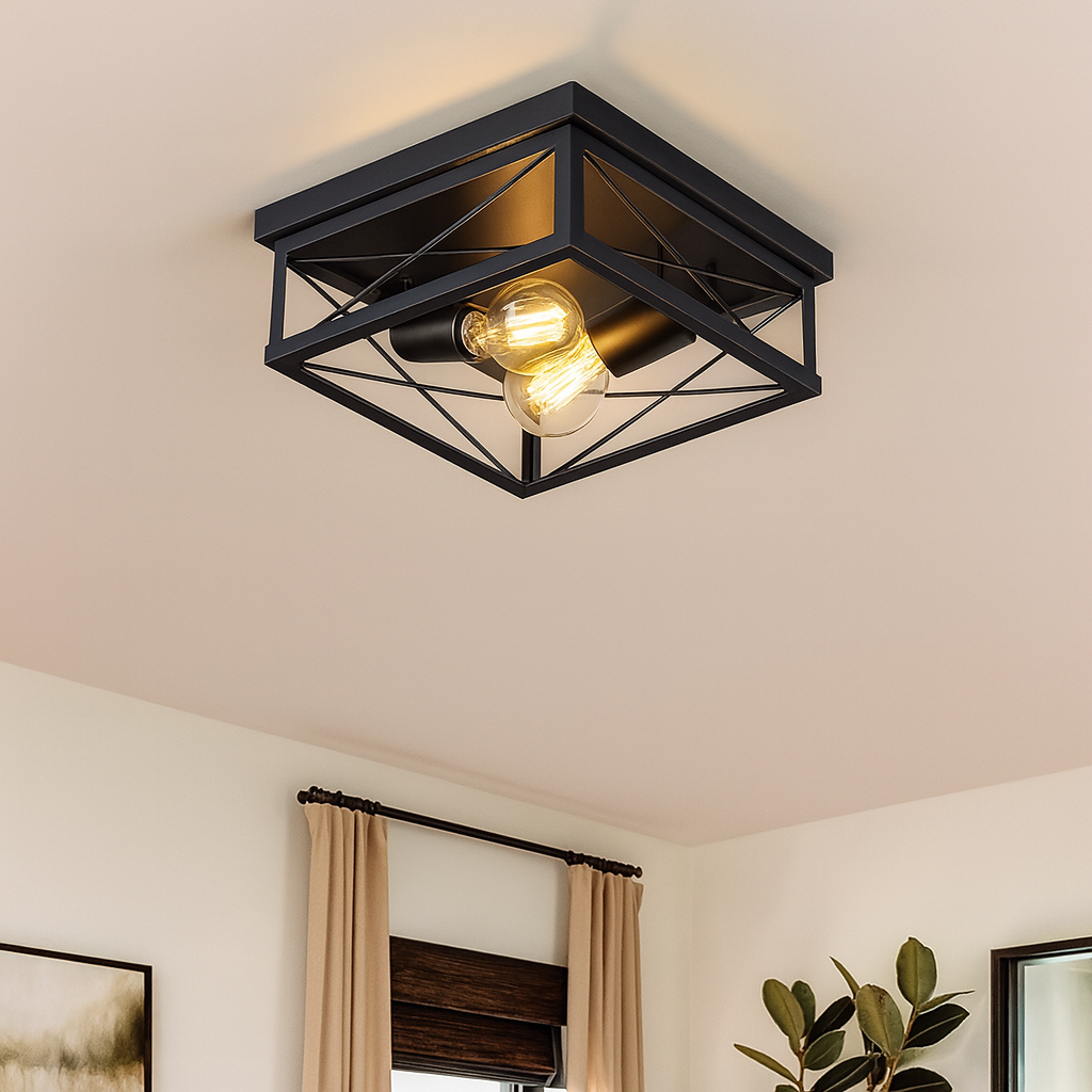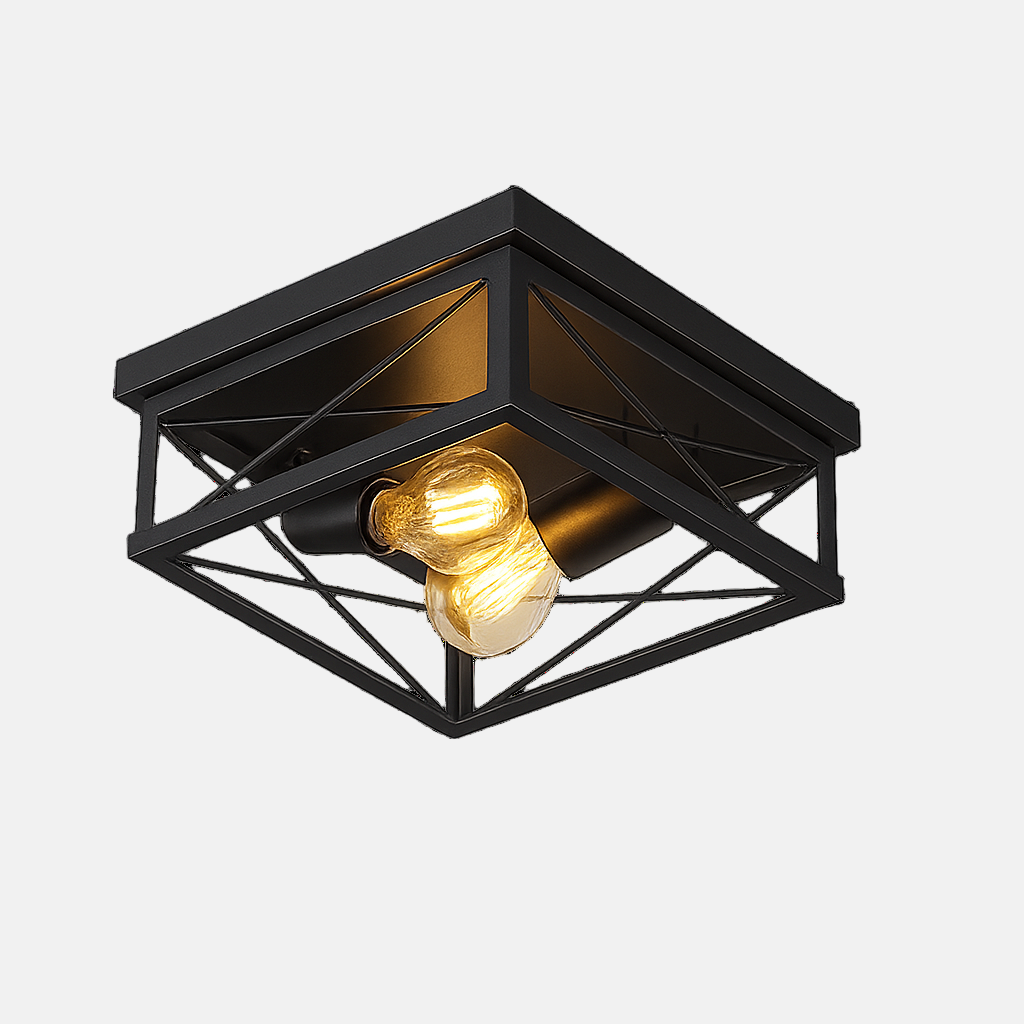 Denna fyrkantiga taklampa i metall kombinerar industriell charm med modern funktionalitet. Den öppna ramen med korsade detaljer ger en rå men stilren look som framhäver ljuskällan och skapar en varm atmosfär i rummet. Perfekt för kök, matsal, hall eller vardagsrum – och lika snygg i både moderna och klassiska inredningar.