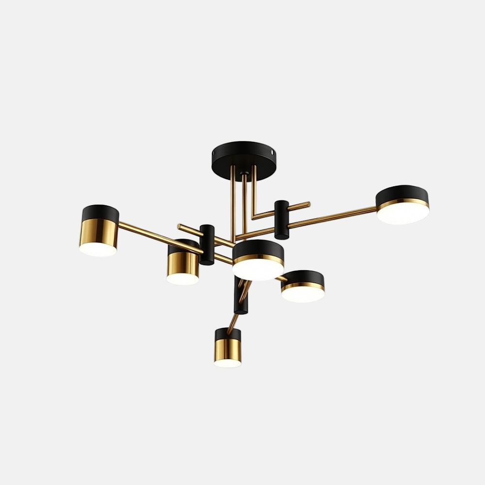 Förvandla ditt hem med denna moderna taklampa i målad metall, skapad för att ge både elegans och funktion. Den svarta och guldfärgade ytan i pläterad finish ger ett lyxigt uttryck som passar perfekt i vardagsrum, matsal eller kontor. Tack vare den inbyggda LED-tekniken får du ett kraftfullt och jämnt ljus som framhäver rummets karaktär.