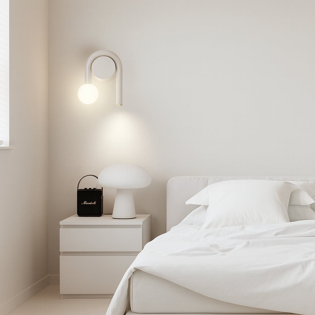 CLARO är en elegant vägglampa som kombinerar modern Art Deco-stil med klassisk funktionalitet. Den frostade glaskupan sprider ett mjukt och behagligt ljus, medan den vita finishen och den robusta metallkonstruktionen gör att lampan passar perfekt i både moderna och tidlösa inredningar.